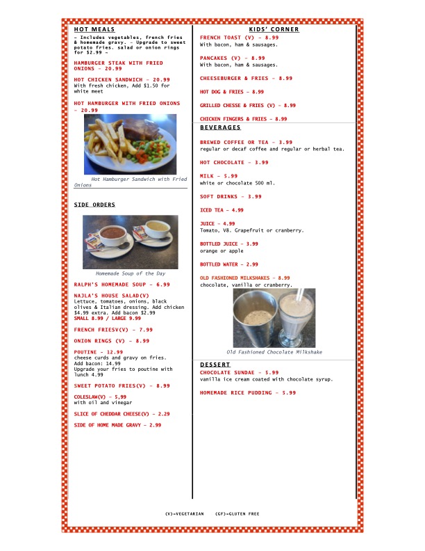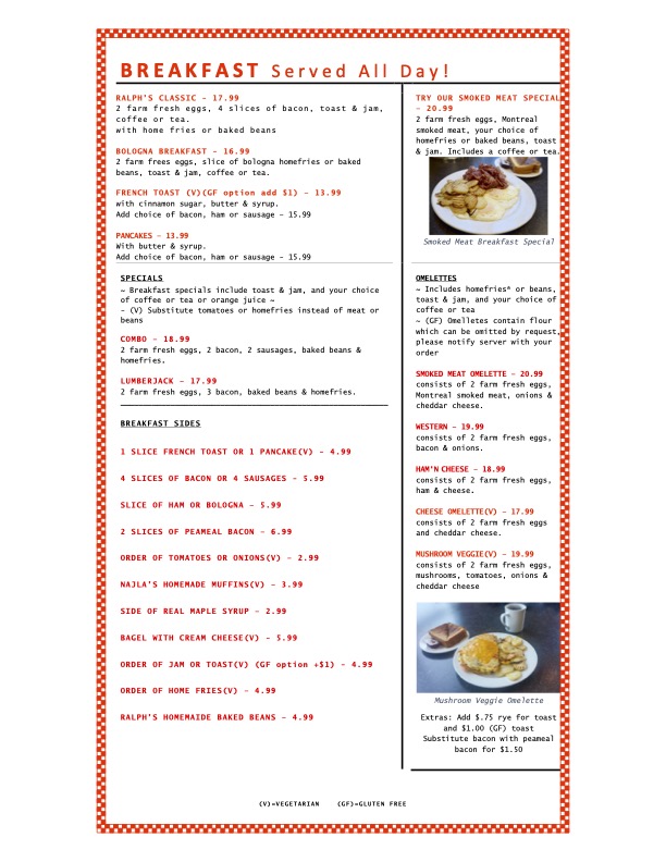 Ralph & Sons Diner Menu